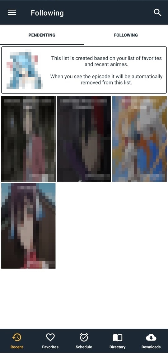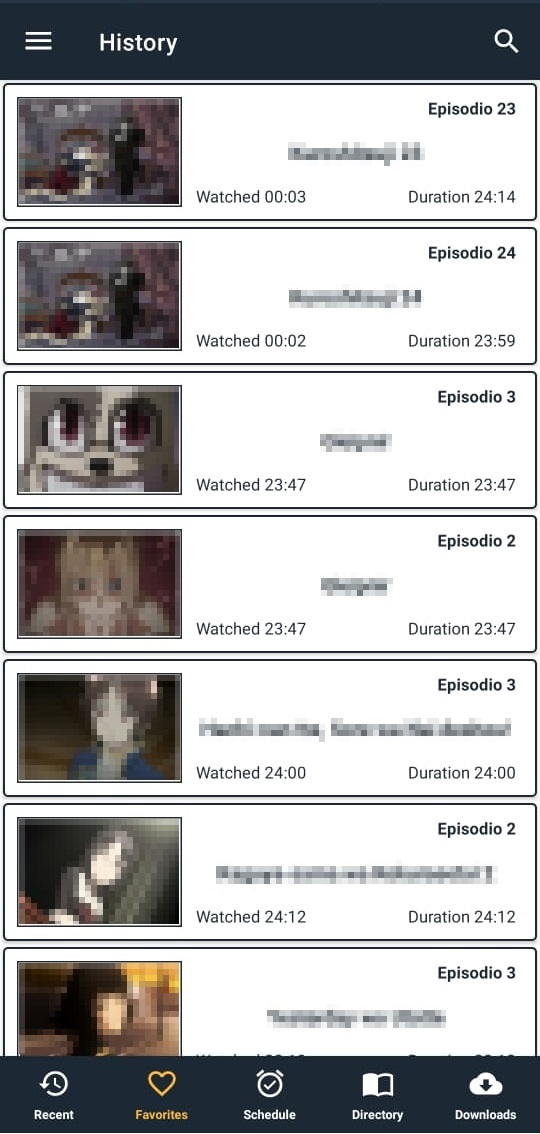 List system where you can see the episodes pending to watch and more.